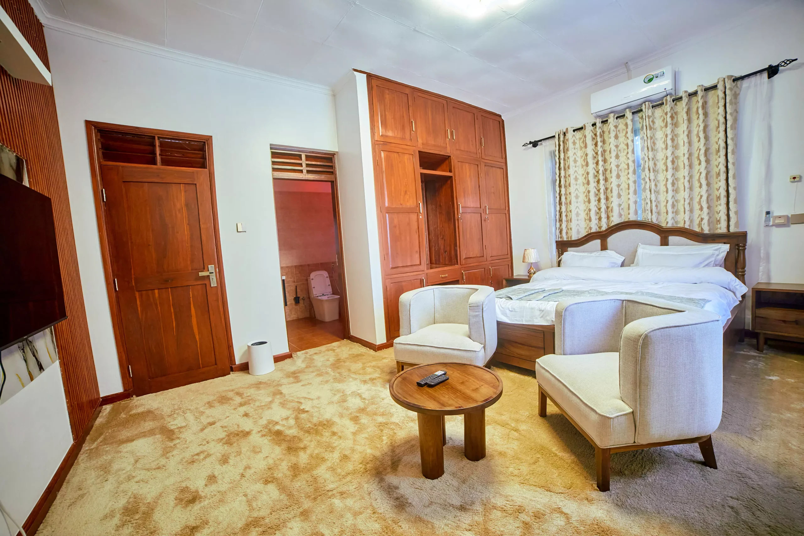 The Blue Diamond room offers an exceptional blend of tranquility, design, and comfort. Positioned as the crown jewel of Clariton Exclusive House, this master suite features a soft-toned interior, a cozy sitting area, modern air cooler, smart TV, and a spacious private bathroom with both bathtub and shower. With balcony access and refined décor, it’s the perfect space for executive guests or romantic travelers seeking privacy and elegance.